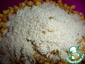 - Орехи (разные - у меня горсть грецких, кунжутные семечки, миндаль) — 200 г
