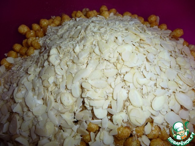 Миндаль подсушить на слабом огне и добавить в мюсли.