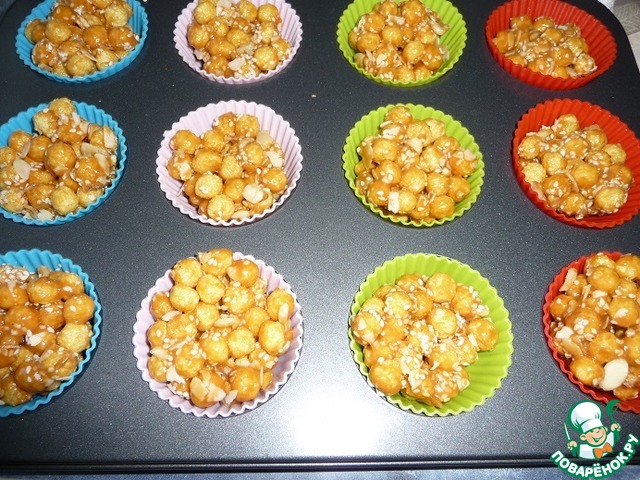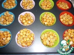 Формы для маффинов заполнить конфетной смесью, слегка прижимая. У меня их только 12шт.