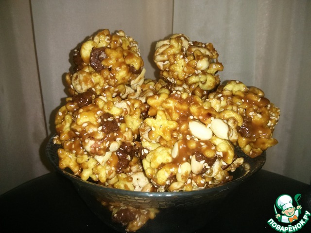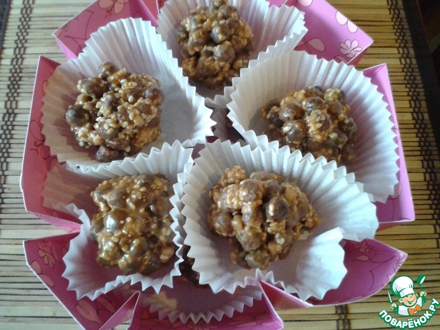 "KELLOG´S CRISPIES". Очень вкусная сладость для деток из сухого завтрака и ирисок с добавлением орехов, чем то напоминает мое детство. Быстро готовится и так же быстро исчезает.