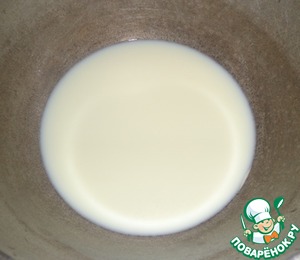• Теперь приступим к приготовлению соуса. Молоко вылить в кастрюлю и довести до кипения.