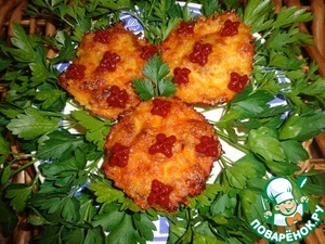 Ставим формочки в разогретую духовку и выпекаем до готовности (20-30 минут). Дать немного остыть и украсить с помощью кондитерского шприца томатной пастой.