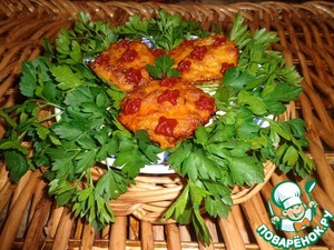 • Заливаем соусом (1 ч. л. на одну формочку).