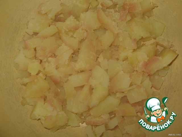 • Отвариваем картофель в мундире. Очищаем и нарезаем.
