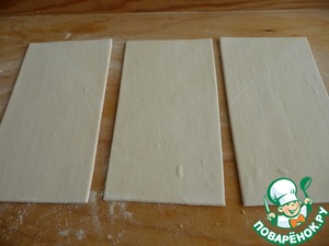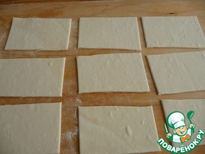 Защипнуть уголки теста (уголки смочить водой и защипнуть по диагонали).