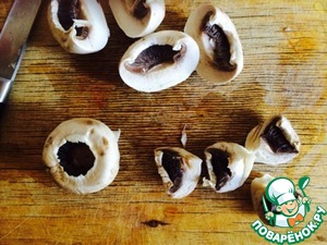 Я придумала для себя идеальный способ оставлять гриб сочным, поскольку после жарки он несколько высушивается. Я просто заливаю грибы кипятком на 5 минут, накрыв крышкой. Затем добавляю 1 ст. ложку соевого соуса (вместо соли). В итоге грибочек сохраняет весь сок и аромат.