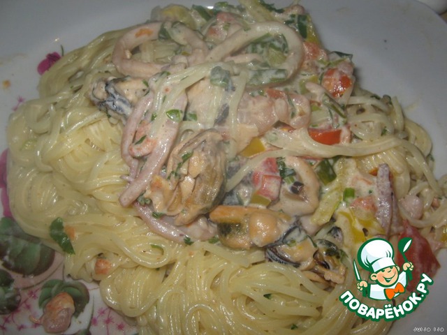 Рецепт «Спагетти с морепродуктами»: