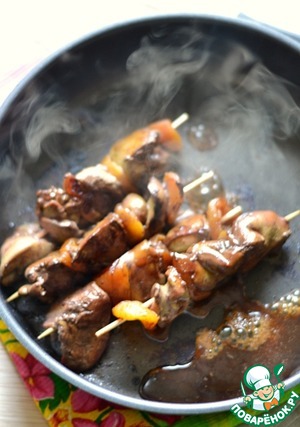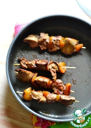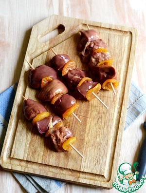 Рецепт «Якитори из куриной печени с курагой»: