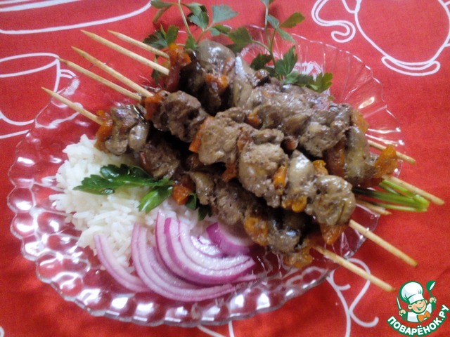Ингредиенты для «Якитори из куриной печени с курагой»: