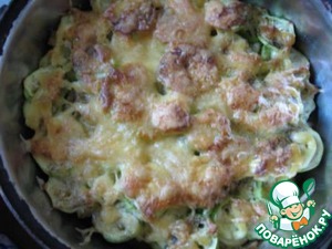 Отправляем запеканочку в духовку на 40-50 минут при температуре 180 градусов. Готовность определяем протыкая овощи шпажкой. Сырок должен быть румяным.