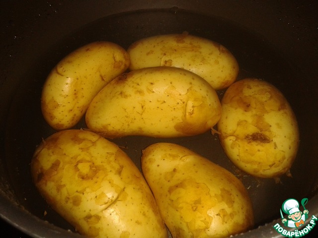 Картофель отварить в подсоленой воде, пюрировать с добавлением оливкого масла, молока, черного перца.
