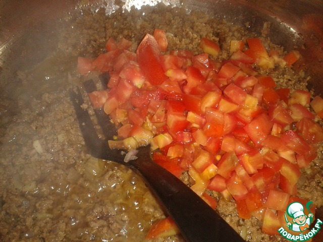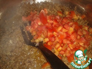 Добавляем нарезанные помидоры (с выделившимся из них соком).