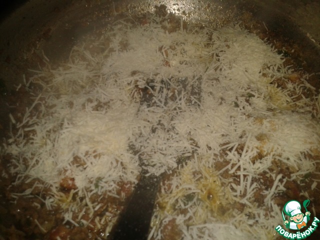 ... натертый сыр. Посолить, поперчить и добавить мускатный орех и сухари ( чтобы впитали лишнюю влагу).