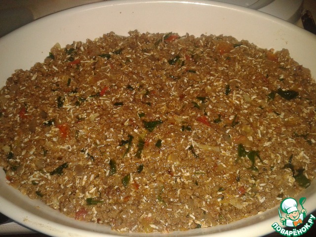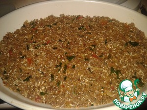 Сверху выкладываем картофельное пюре. Сверху посыпать сухарями, сыром и мускатным орехом. Запекаем при 180' 1час.