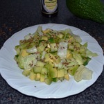 Я очень люблю авокадо, стараюсь почаще с ним готовить салат, и на этот раз приготовила очень легкий и быстрый салат, надеюсь, любителям авокадо понравится. Такой салат можно приготовить для пикника, все ингредиенты смешать в посуде, плотно закрыть и взять с собой на природу.