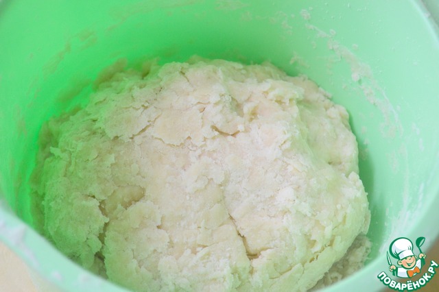 Просеиваем муку, добавляем сахар и соль (я добавляю еще разрыхлитель, но в первоисточнике не было). Вливаем растительное масло и ледяную воду, замешиваем тесто и убираем его в холодильник на час.