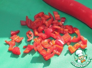 Мелко порезать перец, под струёй воды, удалить семена. Лучше делать это в перчатках.