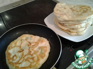 На середину лепешки выложить тертый сыр, можно зелень любую