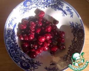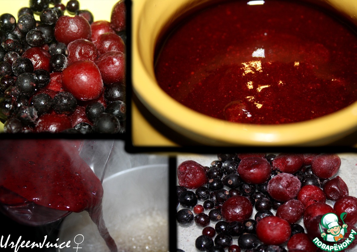 Пока мясо запекается, сделать соус. Разморозить вишню и чёрную смородину.