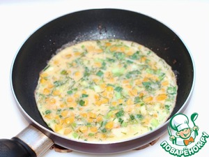 Разогреть небольшую сковороду (снимать удобнее омлет) и выпекать небольшие омлетики.