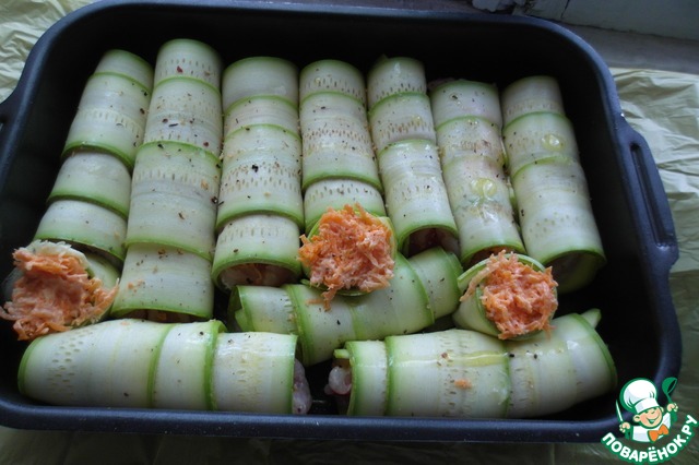 Рецепт «Рулетики "Курица в кабачке"»: