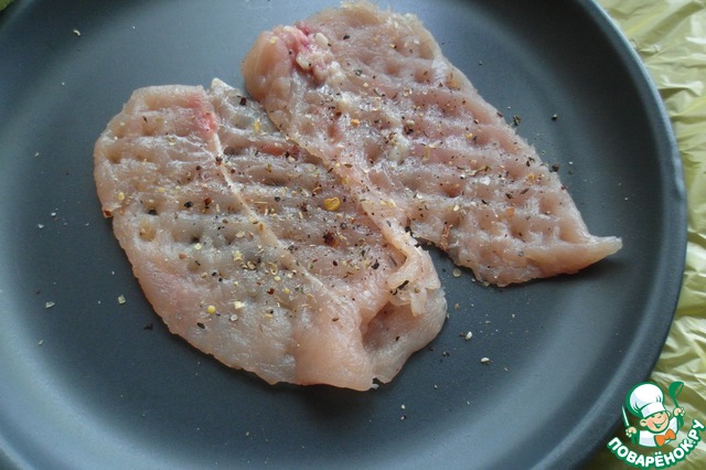 2. Отбиваем куриное филе до толщины 3-5 мм.