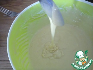 Получится вот такое не густое тесто которое должно стекать с ложки лентой.
