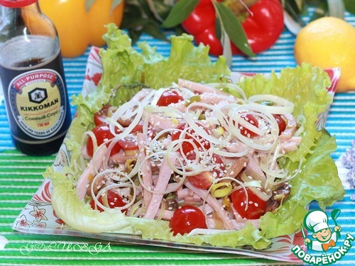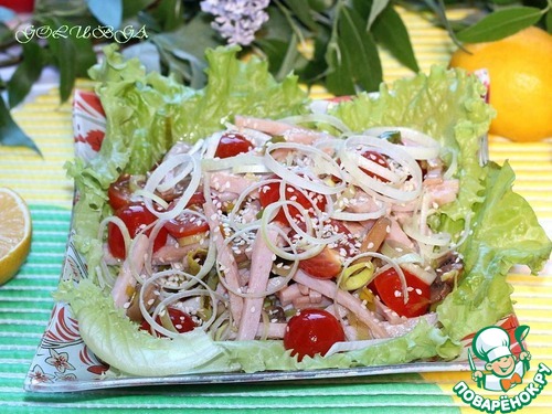Рецепт «Салат с луком-пореем, мясом и кунжутом»: