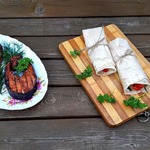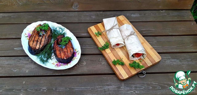 Предлагаю Вам две закуски: печеный лук и овощной салат в лаваше. Вкусно, просто, идеально для пикника.