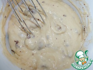 В тесто добавить нарезанные шоколадки, аккуратно размешать венчиком.