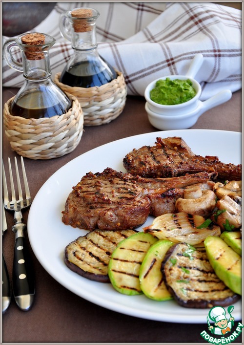 Рецепт «Маринованное каре телятины с зеленым соусом»: