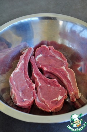 Телятину разрезать по косточке. Выложить в глубокую посуду для маринования.