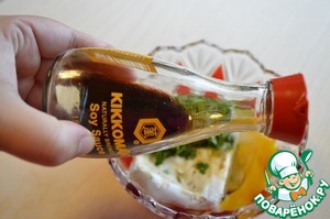 - Соевый соус (от ТМ "Киккоман" 2 чайных ложки в начинку, 1 столовая ложка в заливку)