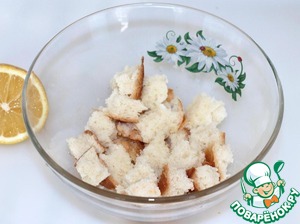 Взять два ломтика подсушенного хлеба, можно заменить панировочными сухарями. Хлеб разламывают на кусочки, добавляют сок 1/2 лимона, очищенные и обжаренные орехи, уксус бальзамический, несколько зубчиков чеснока,