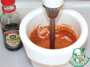 соевый соус, кроме оливкового масла, и измельчают блендером.