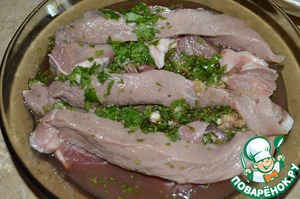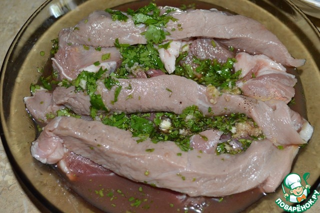 Мясо нарезать на длинные полоски примерно 1*1 см. Залить маринадом, накрыть пленкой и оставить мариноваться не менее полутора часов лучше три.