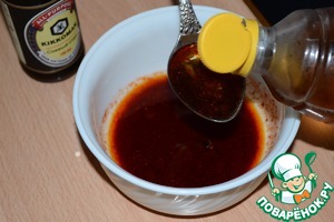 Даем маринаду настояться 20 минут и потом аккуратно вливаем яблочный уксус и соевый соус.