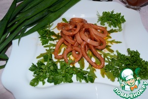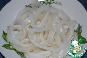 Кольца кальмара отварить в течении трех минут.