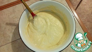 Сливочное масло комнатной температуры взбить с сахаром, по одному вбить яйца, все хорошенько перемешать. Добавить разрыхлитель (соду), ваниль, муку и еще раз все хорошенечко взбить. Тесто получается как густая сметана.