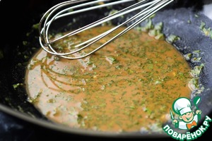 Для лимонно-горчичного маринада смешать лимонный сок, цедру, соевый соус, оливковое масло, горчицу и мелко порубленную зелень (у меня базилик и петрушка). Смешать венчиком до однородности.