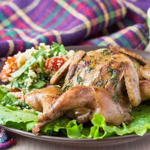 Рецепт «Перепелки на гриле с салатом из кускуса и овощей»: