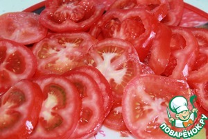 Помидоры режем кружочками.