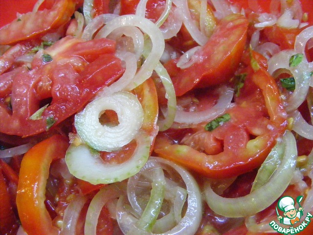 Рецепт «Закуска из помидоров и лука»: