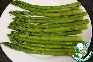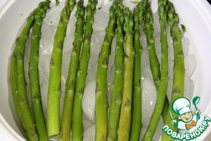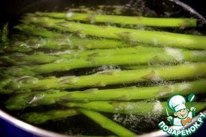 Спаржу помыть и положить в кипящую воду на 4 минуты.