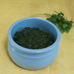 Теперь займемся "изумрудной" пастой. у меня зелень: петрушка, базилик, лаврушка, сельдерей. все мелко нарезать и измельчить в блендере с добавлением немного воды (1/3). полученную пасту вылить в банку или другую емкость и хранить в холодильеике до 2 недель