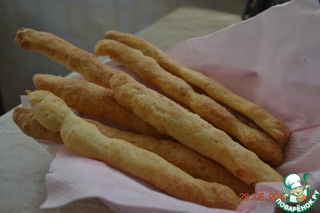 Очень вкусные сырные палочки, от которых тяжело оторваться. Отличное дополнение к любым супам-пюре, а также к луковому супу. Ими с успехом можно заменить хлеб и гренки.