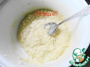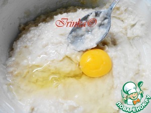 Затем добавляем яйцо, водку, перемешиваем и начинаем потихоньку подмешивать муку.
