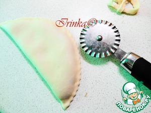 Накрываем второй половиной, выдавливаем воздух (чтобы чебуреки не распухли во время жарки) и придавливаем края. Затем проходим краем блюдца или роликом для теста. Проверяем, чтобы не было никаких щелей!