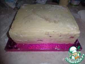 После того, как торт постоял немного, я его немного обрезала по краям, чтобы он был ровный.