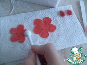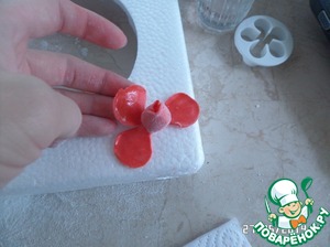Вырубкой вырезала пятилистник и скатала сердцевины. -